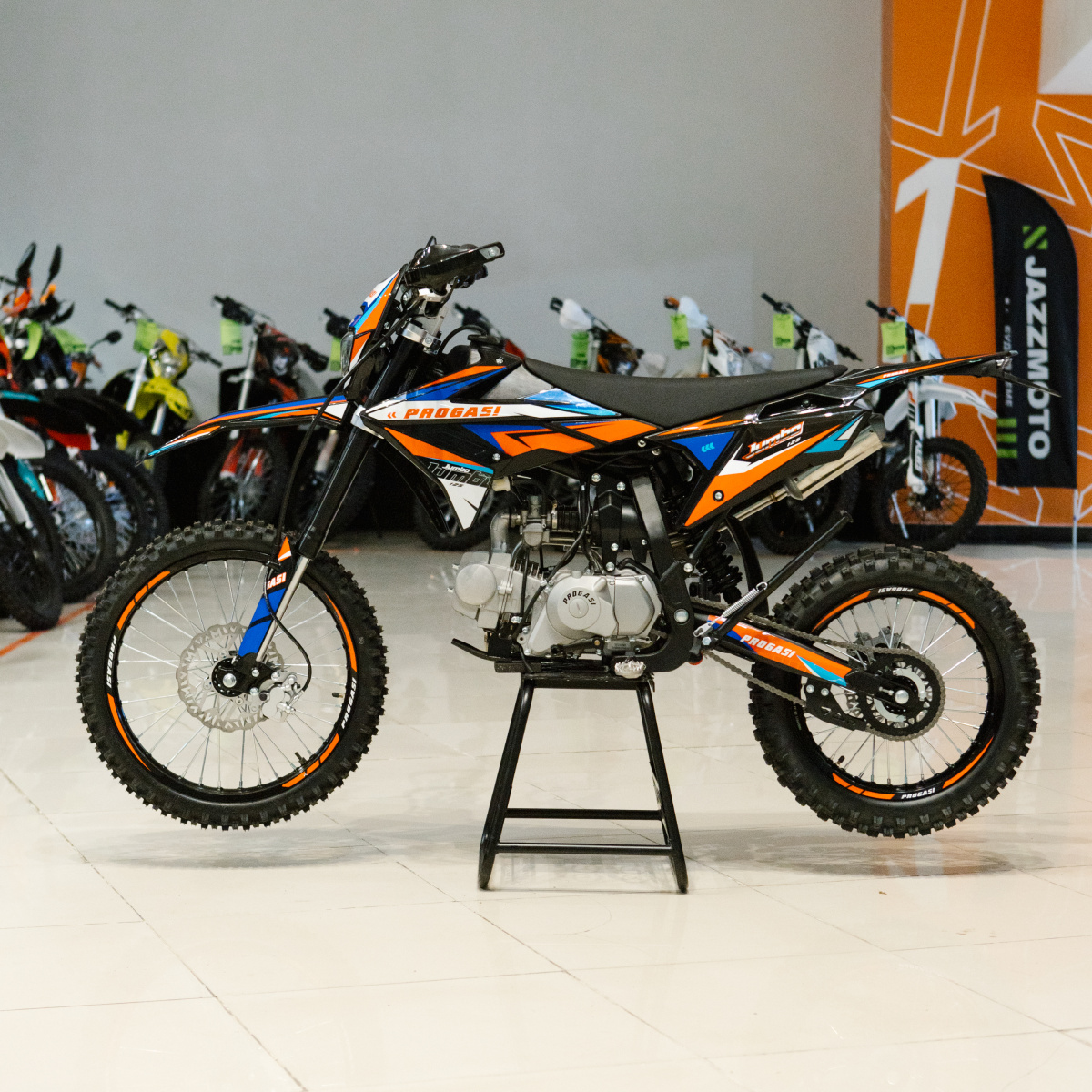 Progasi JUMBO 125 19/16 — это идеальный выбор для тех, кто ищет производительный и стильный питбайк с хорошей управляемостью и привлекательным дизайном. Он отлично подходит для неспешных поездок по лесу, а также для тренировок и соревнований на закрытых трассах.