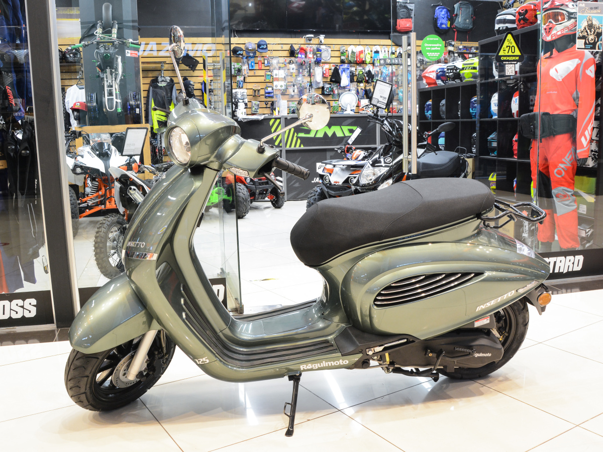 Несмотря на «классический» внешний вид Regulmoto Insetto 125 является современным городским скутером. Среди его комплектующих и компонентов представлены такие современные технические и конструктивные решения как инжектор, дисковые тормоза, литые колесные диски, светодиодная оптика, современная комбинированная приборная панель со стрелочным индикатором спидометра и LED-дисплеем, надежные кнопочные переключатели.